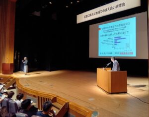 避難支援の取組みについて町内会(手稲区:前田ゆたか町内会 野瀬福祉部長)の立場と視点から発表いただき、避難支援について町内会組織の中での合意形成するプロセス、平時に取り組んでいる見守り活動の重要性、障がいのある方や高齢者など要配慮者へ寄り添った関わりと支援体制を話され、取組みの参考となる実践事例でした。